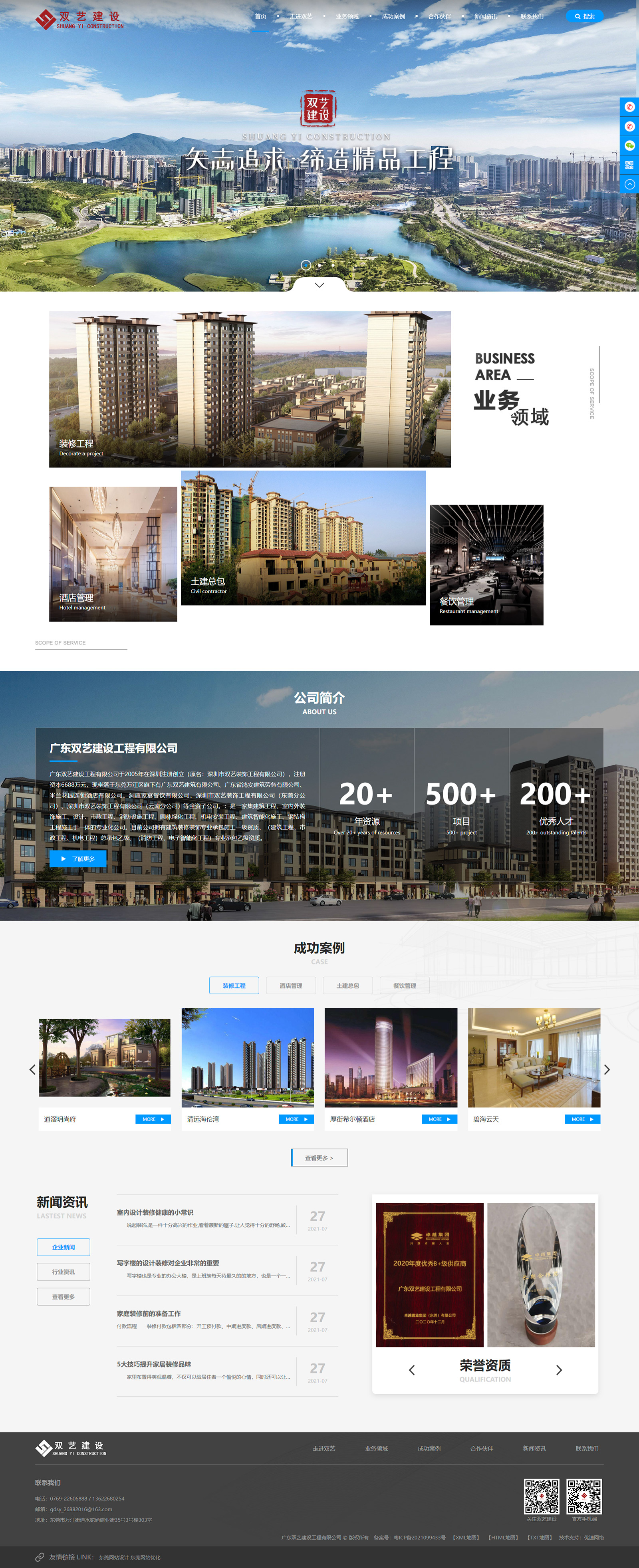 感謝廣東雙藝建設工程有限公司和東莞市優(yōu)速網絡科技有限公司合作品牌型網站建設,雙藝建設在建筑工程行業(yè)具有非常高的知名度,所以客戶對于網站的各方面的要求也是非常高。在熟悉客戶的各方面情況之后,公司挑選了資深的網站設計美工、網站程序員以及專職客服人員,對客戶進行全程服務。在雙方的共同努力下,網站如期制作上線,并且深受客戶喜愛。